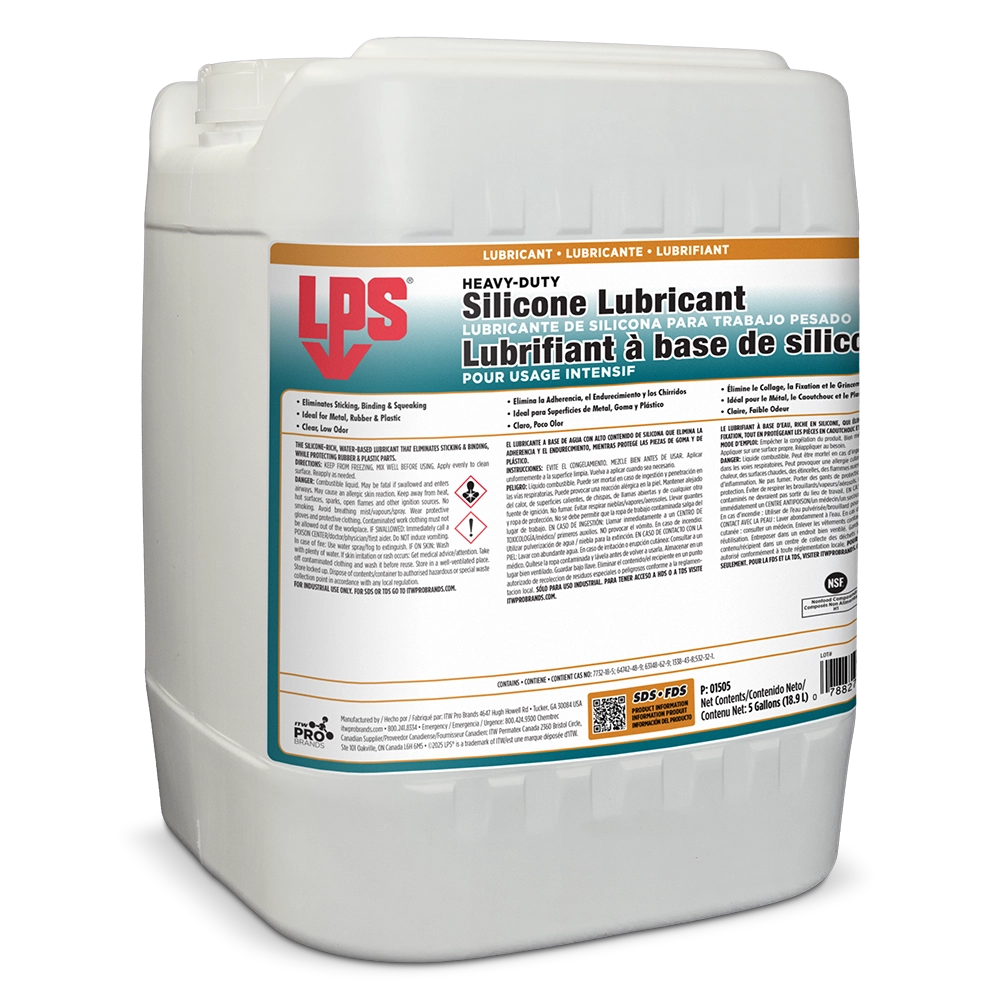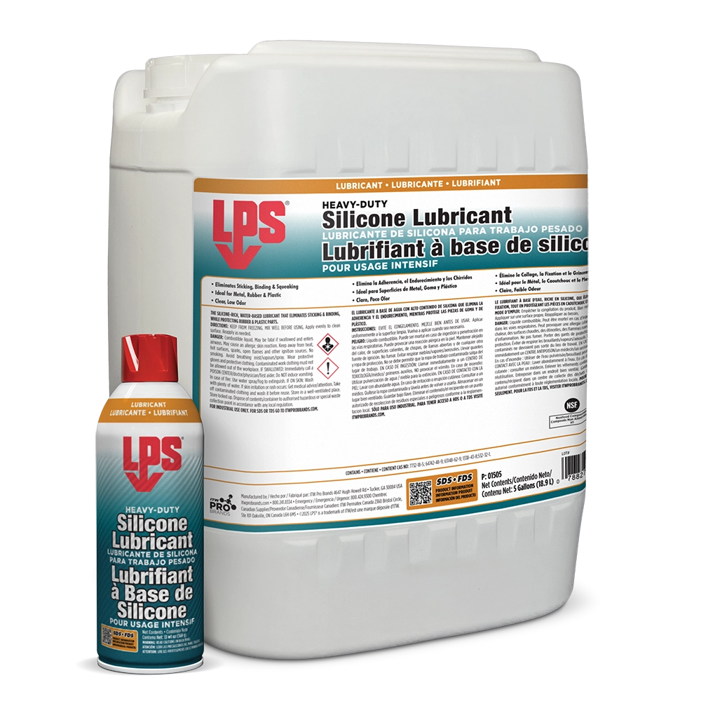 LPS® Heavy Duty Silicone Lubricant is the silicone-rich, water-based lubricant that eliminates sticking, binding, and squeaking while protecting rubber and plastic parts. Odorless, colorless, and non-toxic, Heavy Duty Silicone Lubricant is ideal for use where mineral or petroleum oils are not acceptable.