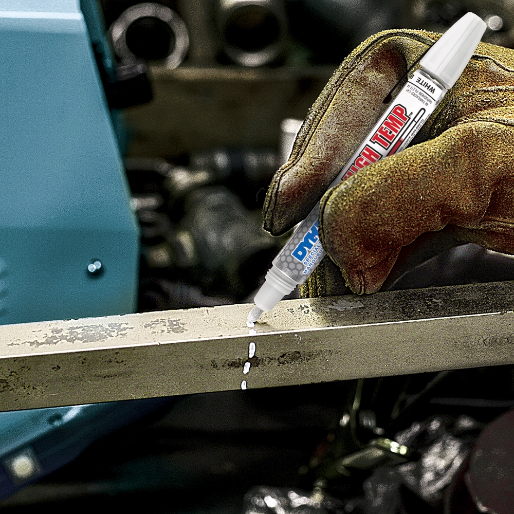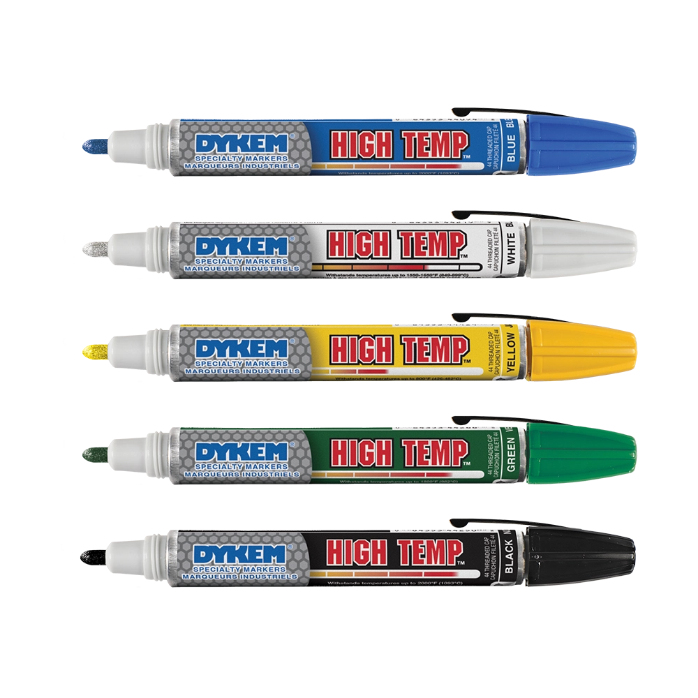 Specifically formulated for marking surfaces that are exposed to extreme high temperature environments. Marks should be made at room temperature and can be applied to almost any non-porous surface such as metal, glass, and ceramic. When marking on ceramics, the marks will become permanently fused to the surface after heat is applied. Some colors can withstand temperatures up to 2000°F (1093°C).