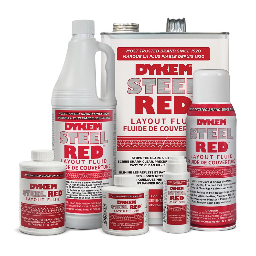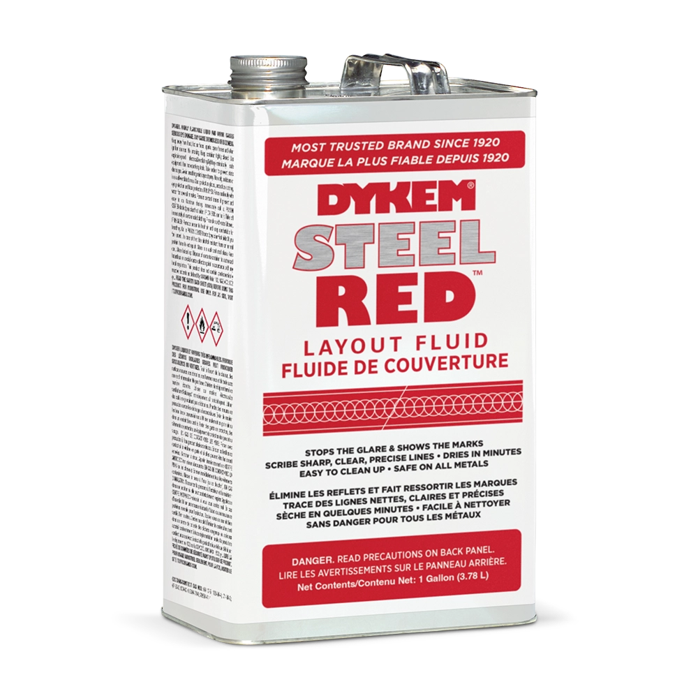 Machine shop operators depend on Dykem® Layout Fluids to scribe sharp, clear, precise lines. When applied, our layout fluids provide a uniform deep color that prevents glare and dries in minutes. All Dykem® Layout Fluids create an extremely thin film which adds practically no thickness to the work piece and remains flexible without cracking and chipping.